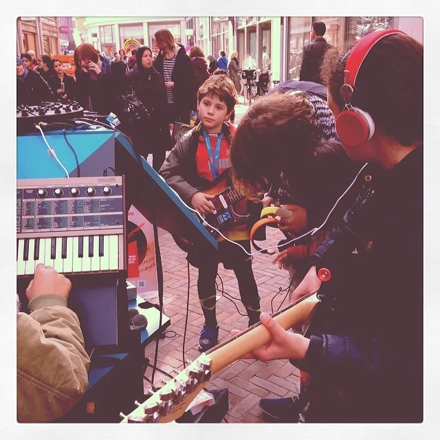 Jack and Ed effectively control every aspect of the experience, using reliable teachers they have trained themselves, importing quality gear that students will want in their own studios, and embracing an exciting and collaborative learning process by wheeling the jam around town.